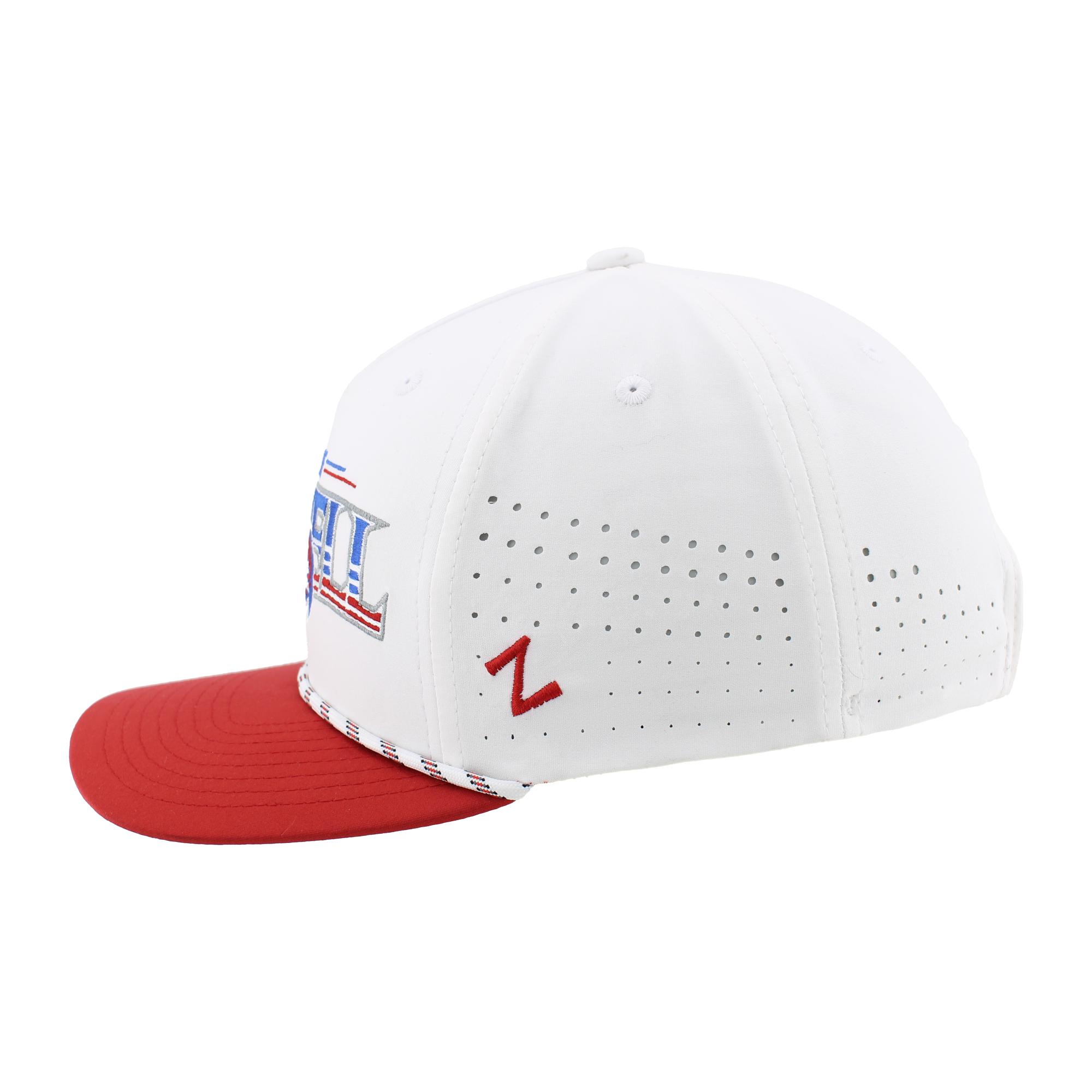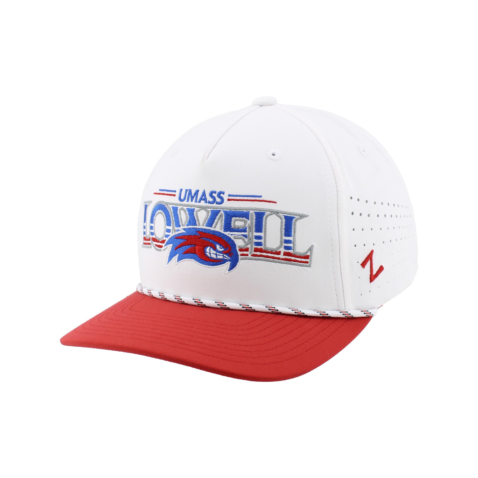 White UMass LOWELL Striper Snapback